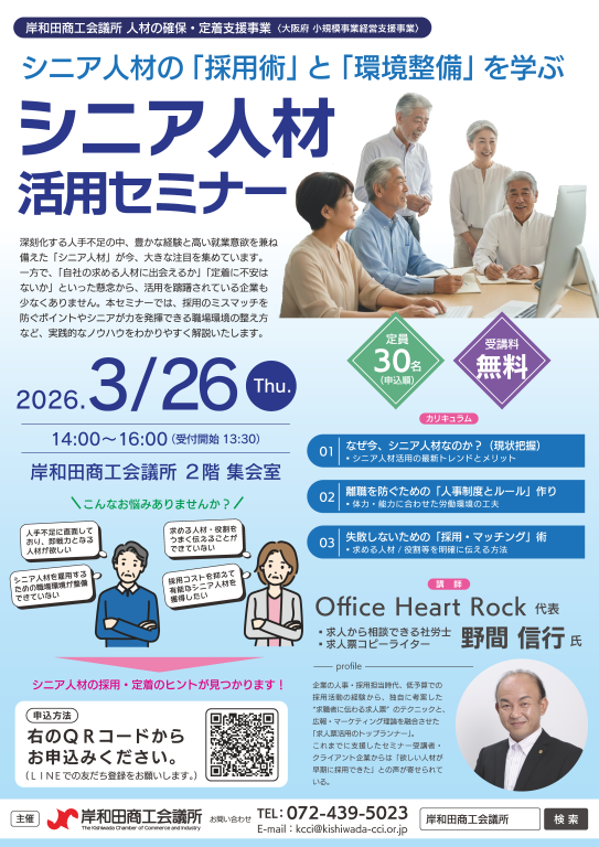 深刻化する人手不足の中、豊かな経験と高い就業意欲を兼ね備えた「シニア人材」が今、大きな注目を集めています。一方で、「自社の求める人材に出会えるか」「定着に不安はないか」といった懸念から、活用を躊躇されている企業も少なくありません。本セミナーでは、採用のミスマッチを防ぐポイントやシニアが力を発揮できる職場環境の整え方など、実践的なノウハウをわかりやすく解説いたします。